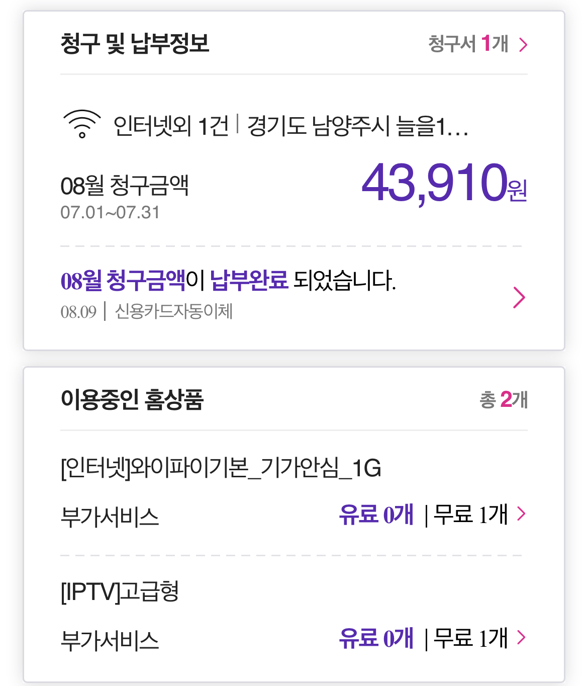 ※ 앗 참고로 인터넷/티비 의무사용기간인 1년이 지났기 때문에