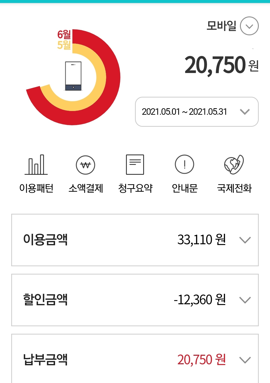 모바일2대는 lte33000원 요금제 쓰는데 2만 몇백원 나오고 모바일1대는 lte44000원 요금제 3만4천원 나오거든요