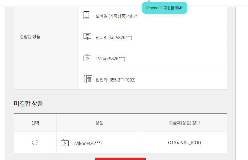 더 결합하실 KT 회선은 마땅치 않으시군요 ㅜㅜ