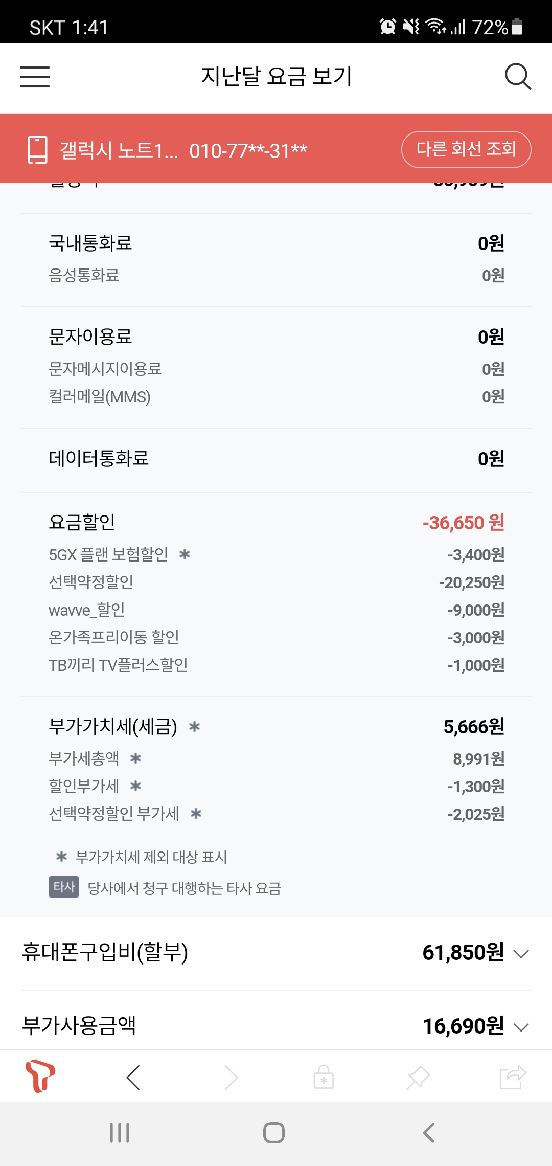 여기에 명의자분의 SK폰 1회선을 '온가족프리' 로 결합중이신데요..!