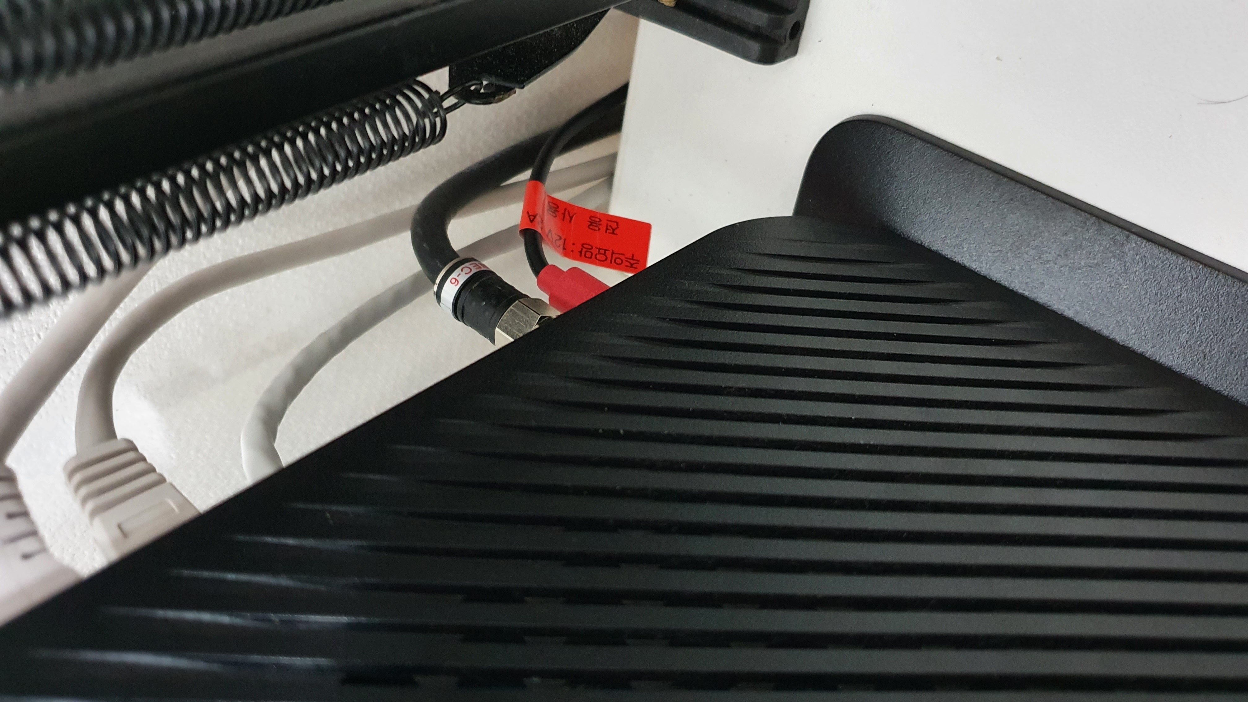 모뎀에 꽂힌 검정색 굵은 선이 바로 동축케이블입니다.