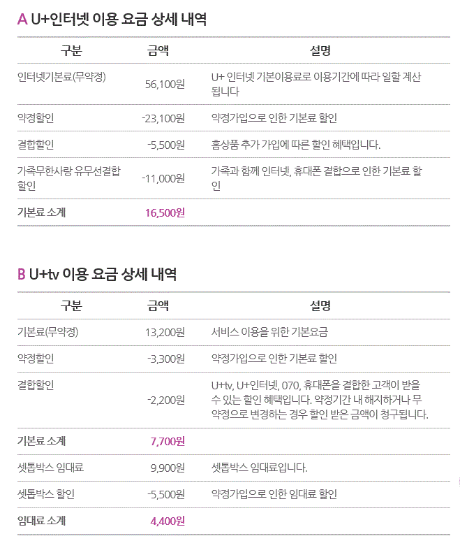 어떻게 되는지 궁금합니다. 아래는 제가 가입한 상품 내용이고요.. 결합은 가족무한사랑으로 되어 있습니다.