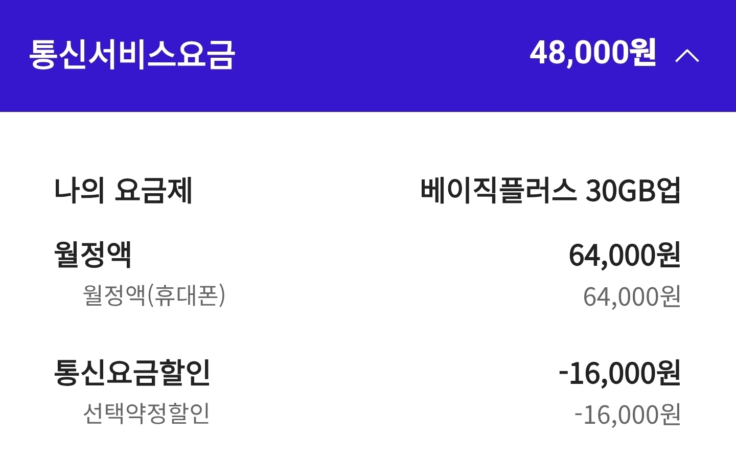현재 요금은 이렇구요. (선택약정할인은 위약금 내야됩니다.)