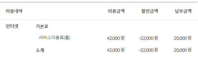 * 기가 급 인터넷 5,500원 할인 + 휴대폰 27,610원 할인 = 총 33,110원의 혜택