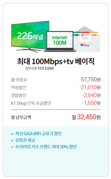 즉.. 100메가 + tv베이직(UHD 셋탑)을 기준으로 제가 계산해보니