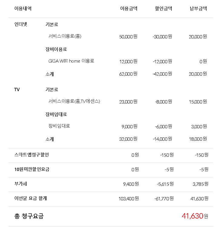 그렇다고 하더라도, 총요금 약 4.2만원만 납부중이시라면….