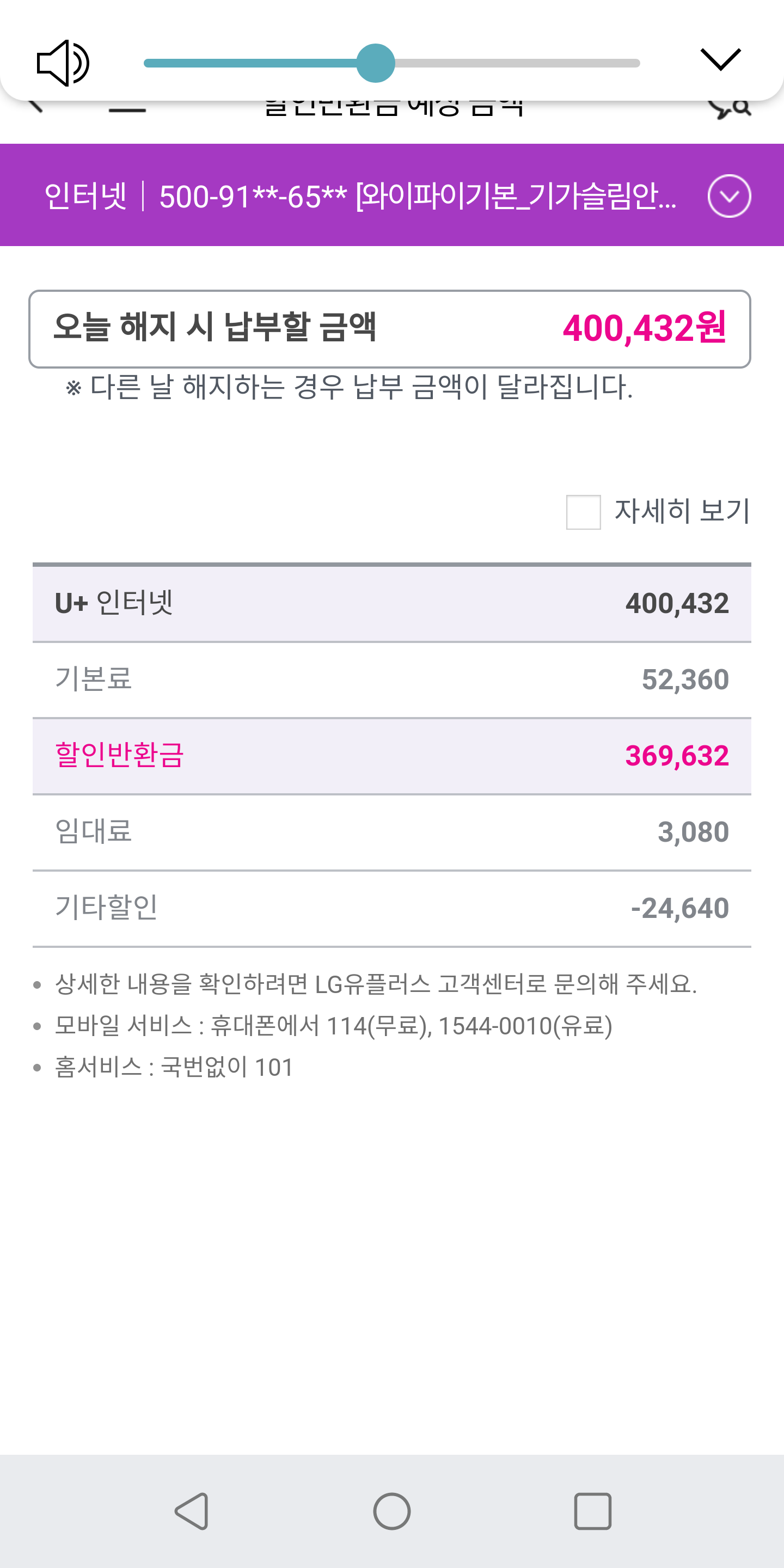 1. 해지위약금을 조회하려고 했는데 조회되지 않습니다. 어제도 가입정보 변경을 시도했었는데 사용중인 LG 핸드폰은 조회가 되는데 꼭 인터넷만 확인하려고 하면 조회가 되질 않네요. 이건 따로 유플러스에 문의를 해봐야겠네요.