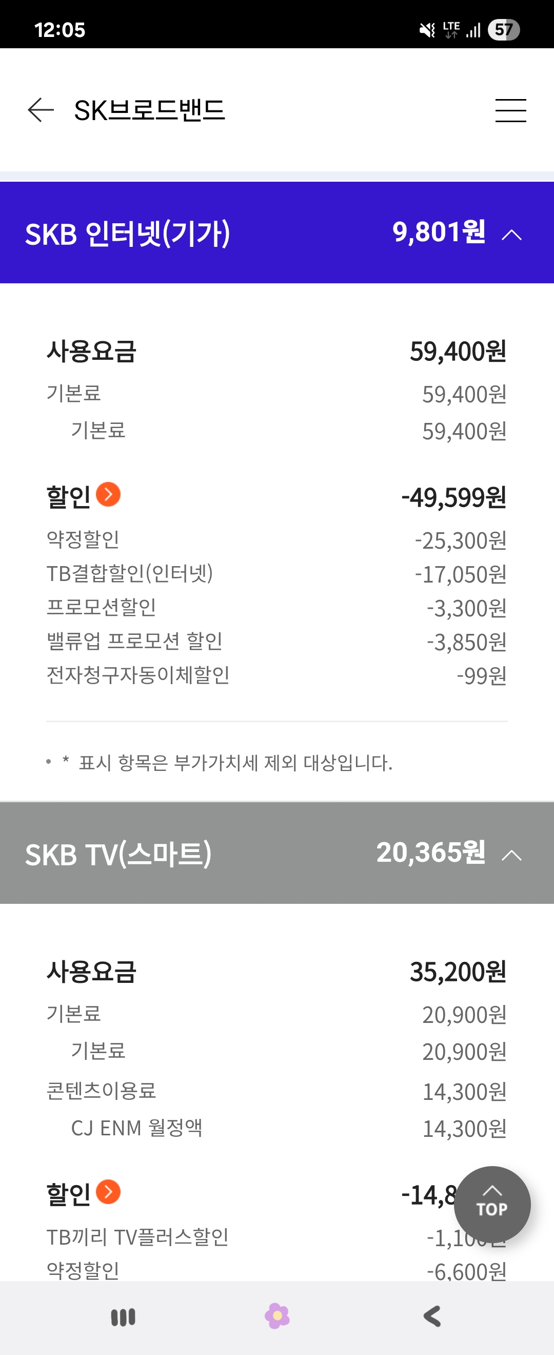 그리고 인터넷과 TV 각각 요금이 얼마씩 청구되는지 궁금합니다🙋♀️