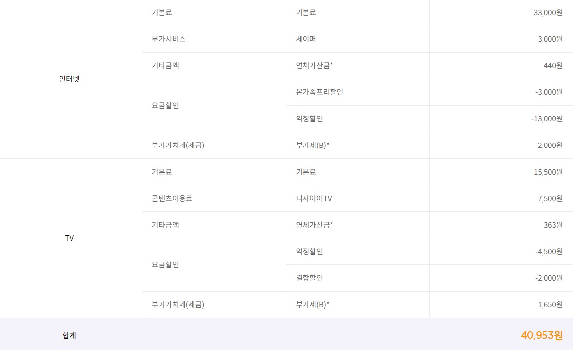 KT인터넷과 TV 요금을 정리해 드리지 않았습니다ㅎㅎ