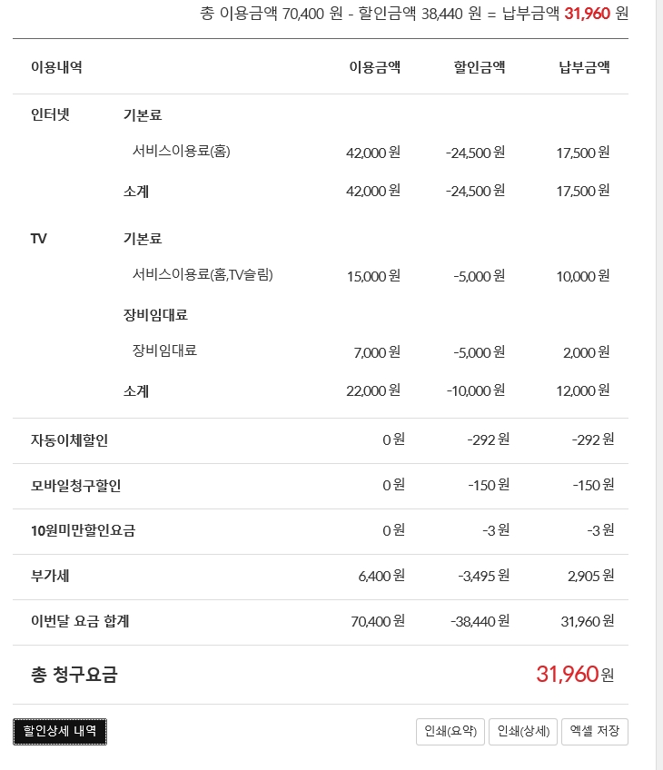 (자동이체 등으로 인한 몇백원의 추가 할인혜택을 제외하면유~~ㅎㅎ)