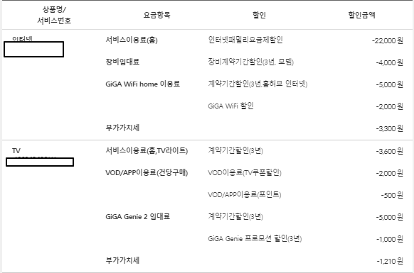 둘다 3년약정 기준으로 부가세, 셋탑박스 임대료를 싹 포함한 금액이고