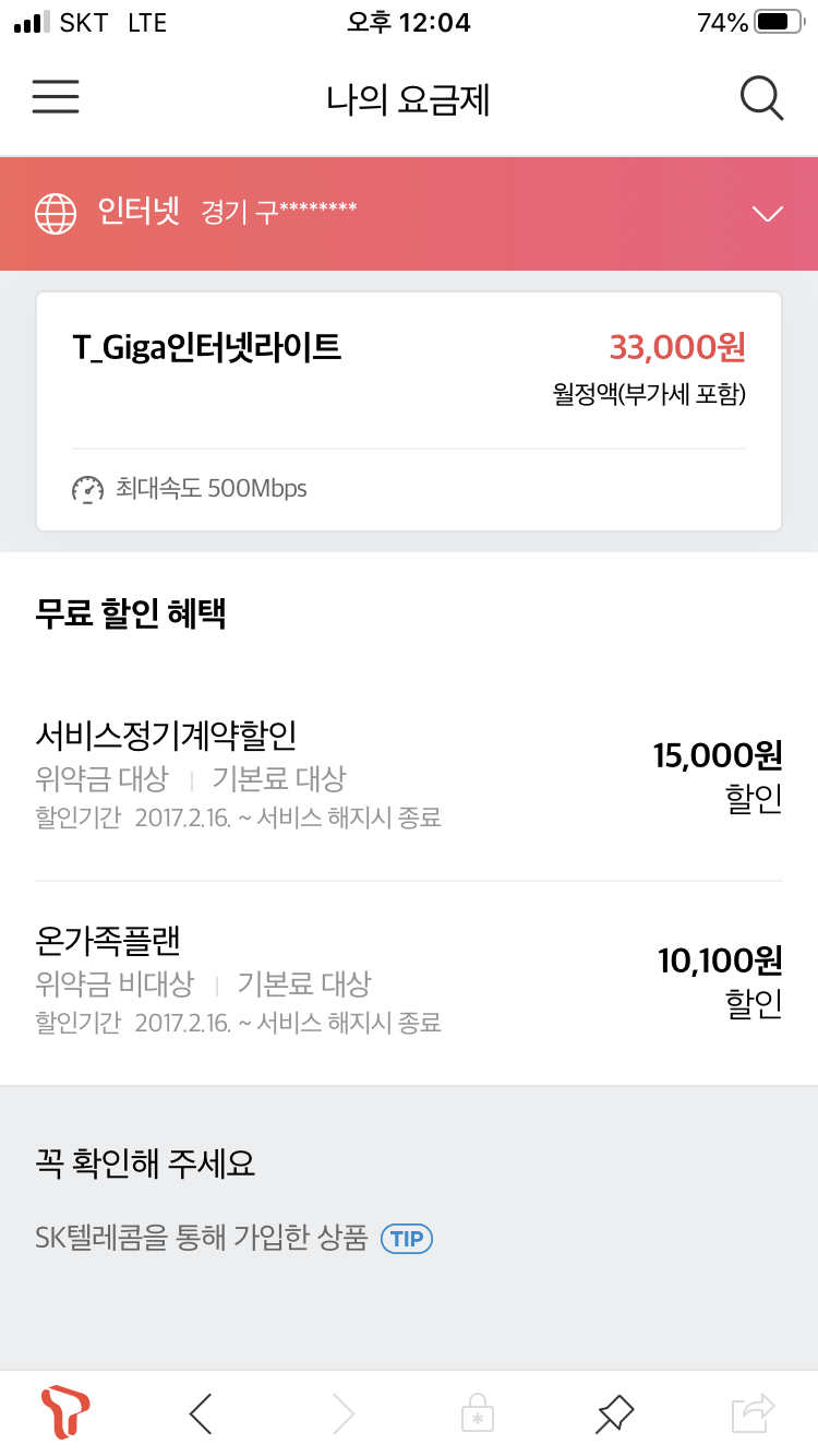 온가족플랜 결합으로 꽤 저렴하게 사용 중이시네요 ^^
