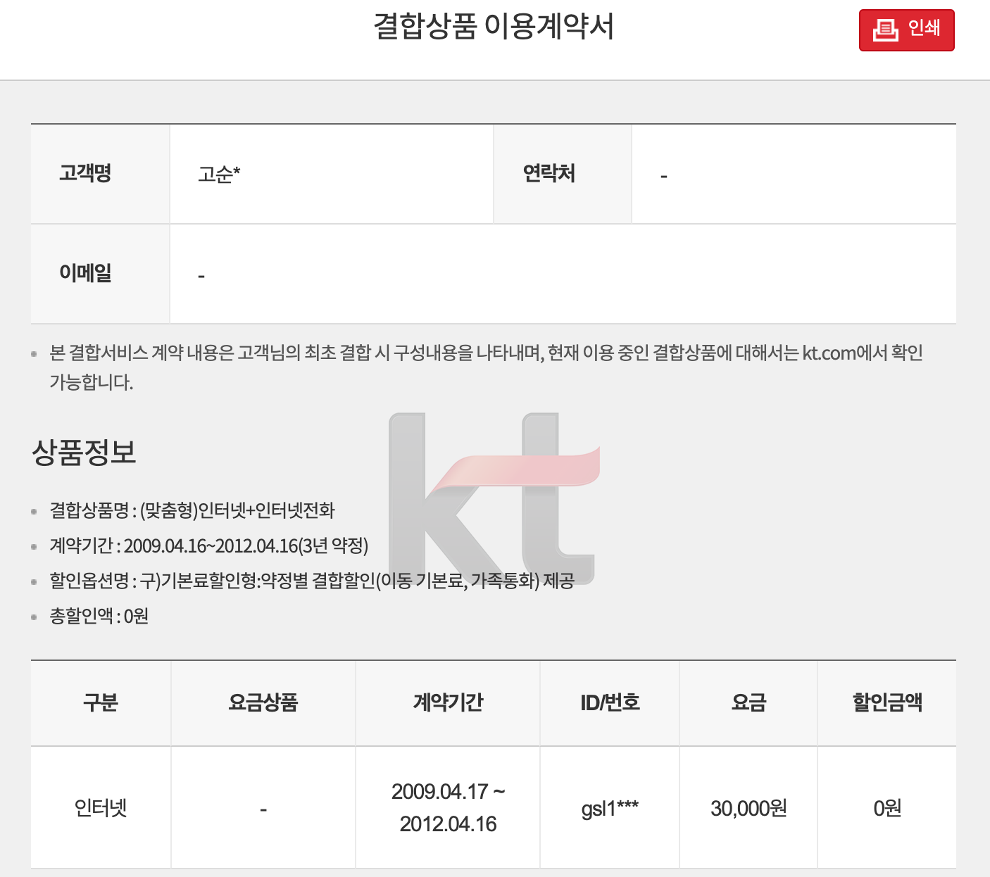 이는 첫달 KT인터넷 요금과 함께 -> 자동으로 알아서 한번 빠져나갈 테니 기억해주세용~!)