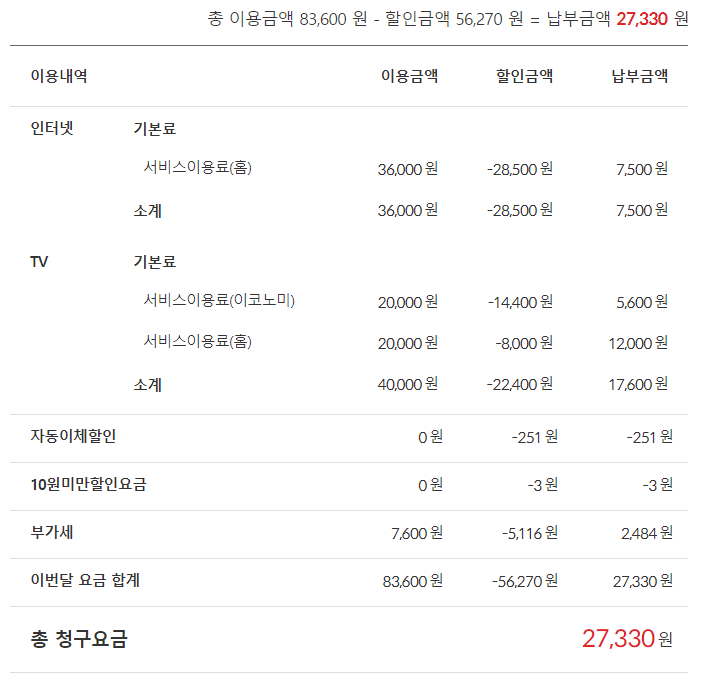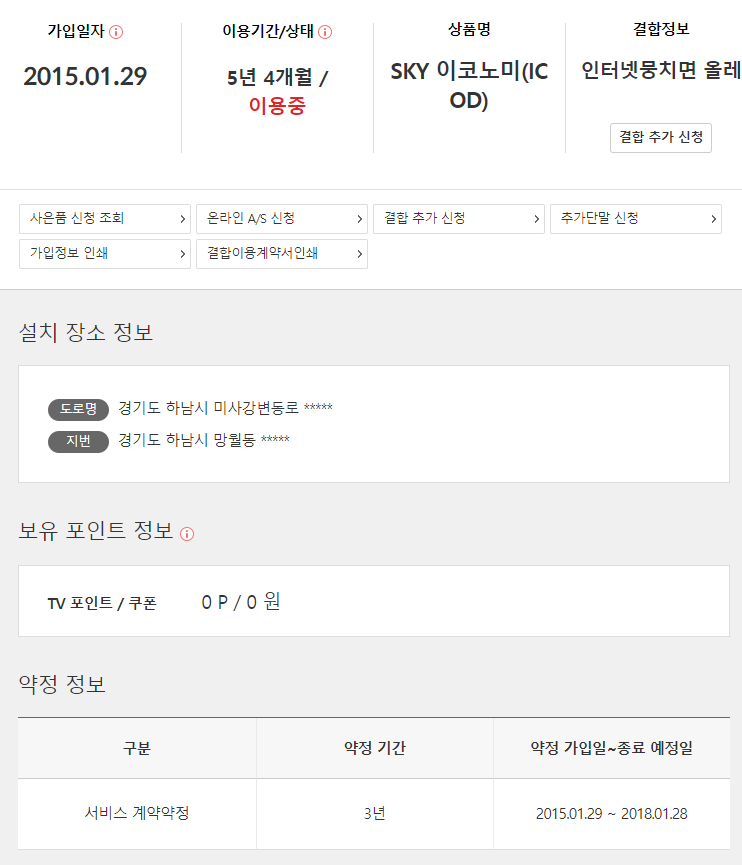 현재 결합 할인을 받고 있고 거실에 IPTV한대가 있고 안방에도 IPTV한대가 더 있습니다. 도합 두개네요.