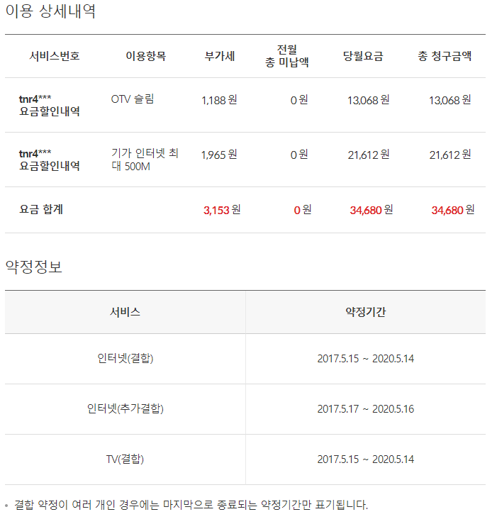 홈페이지 요금명세를 조회해보니 이렇게 뜨더라구요.