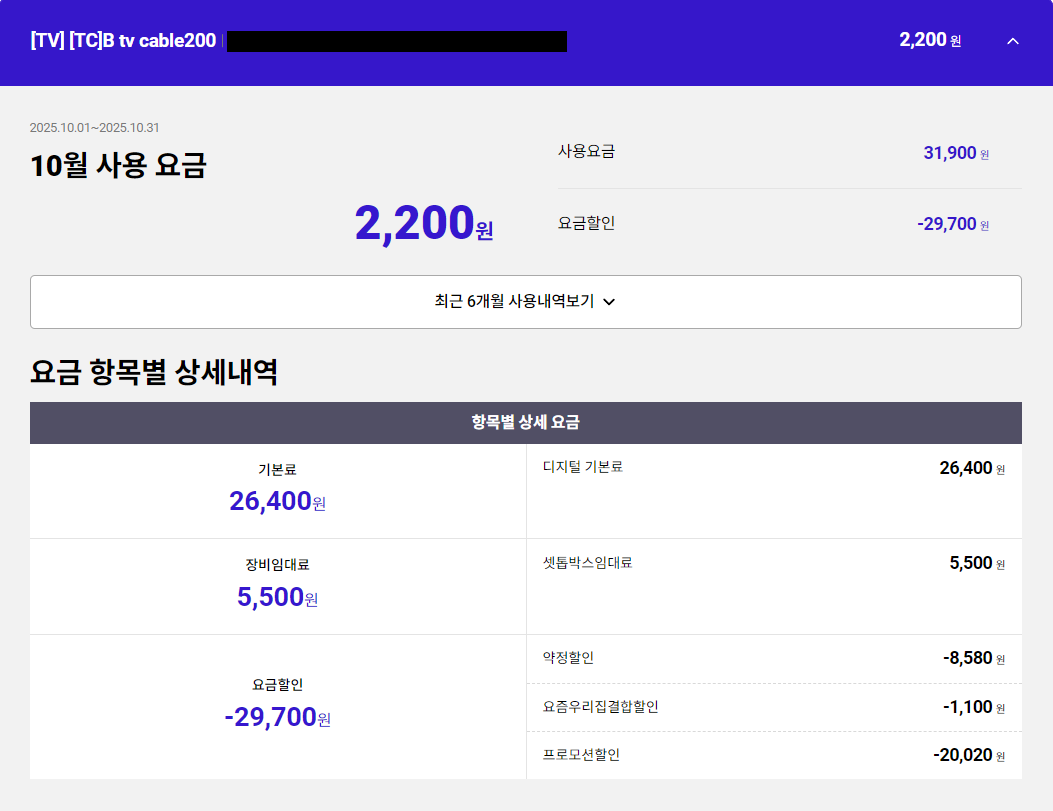 2. 케이블은 인터넷 가입 후 106 측에서 HD화질만 지원하는 BTV 알뜰200(케이블방식 / Dummy QAM) 상품을 월 2,200원에 제공한다는 권유를 받아 가입하였습니다.