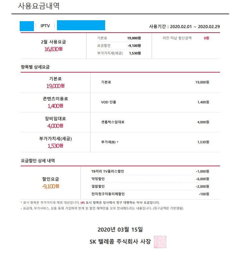 2. "TB끼리 TV플러스" 할인을 적용받으면