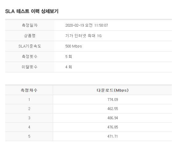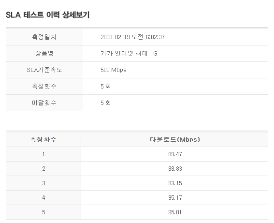 sla 품질측정을 하였어요. 그래서 다 미달이였고 속도가 80~95Mbps 정도라서 완전 미달이였고 업로드시 와이파이도