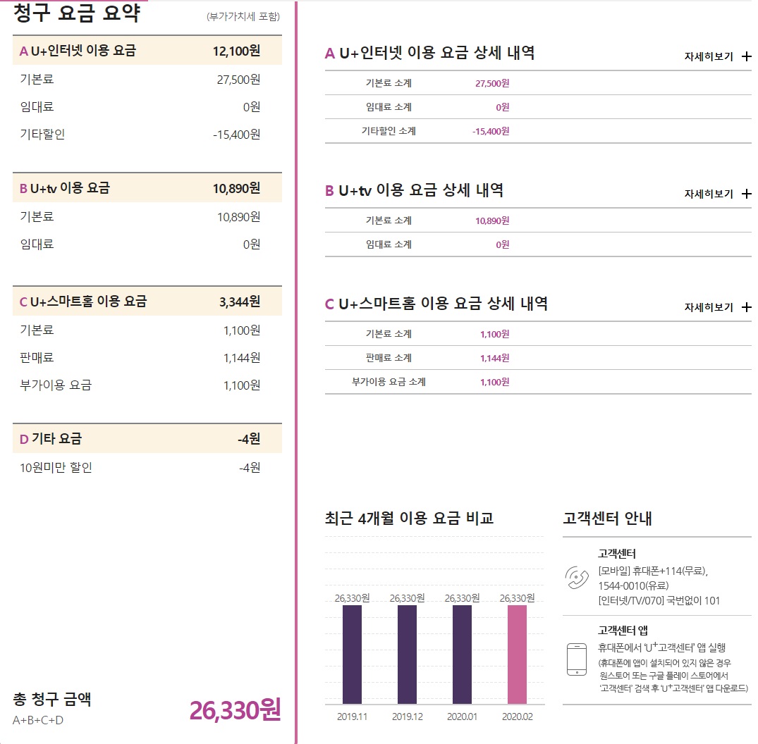 월 26,330원으로 사용 중이시군요!