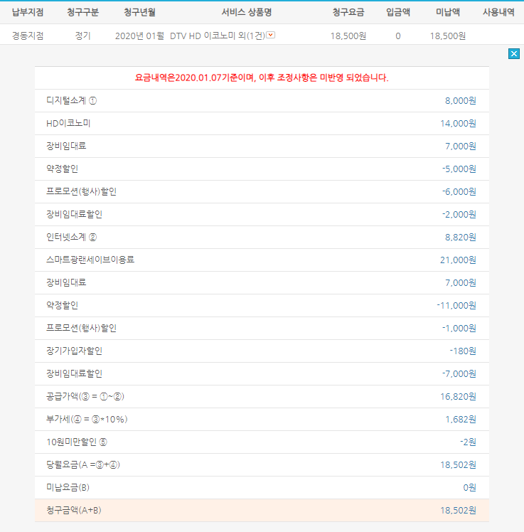 역시 지역케이블이라 요금이 아주 저렴하네요ㅎㅎ