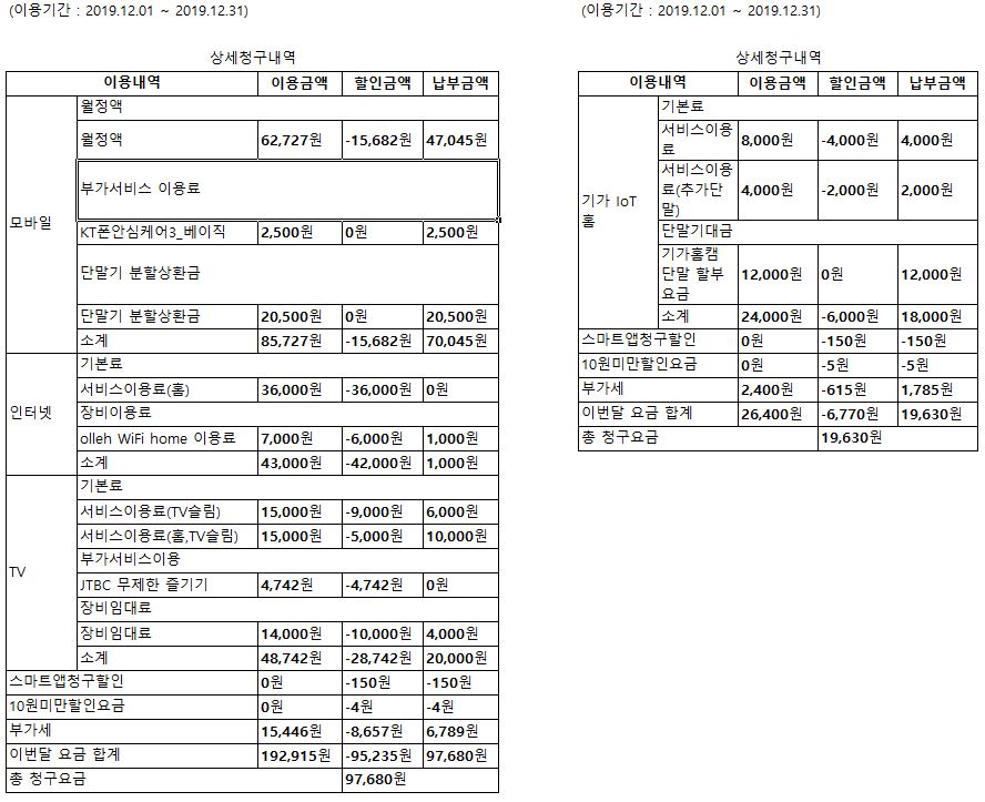 => 저나 콜상담원이 "문자에는 할인 전 요금이 기재되나, 청구서에는 할인된 요금으로 부과됩니다"