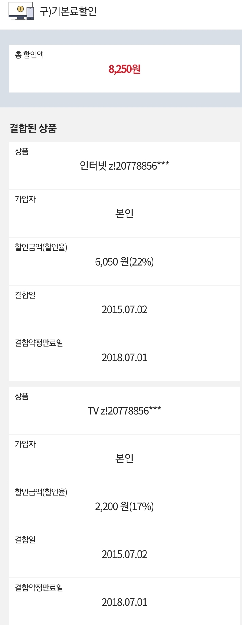 화니야님댁에 적용되어 있는 결합상품을 말씀하시는 걸까요?!