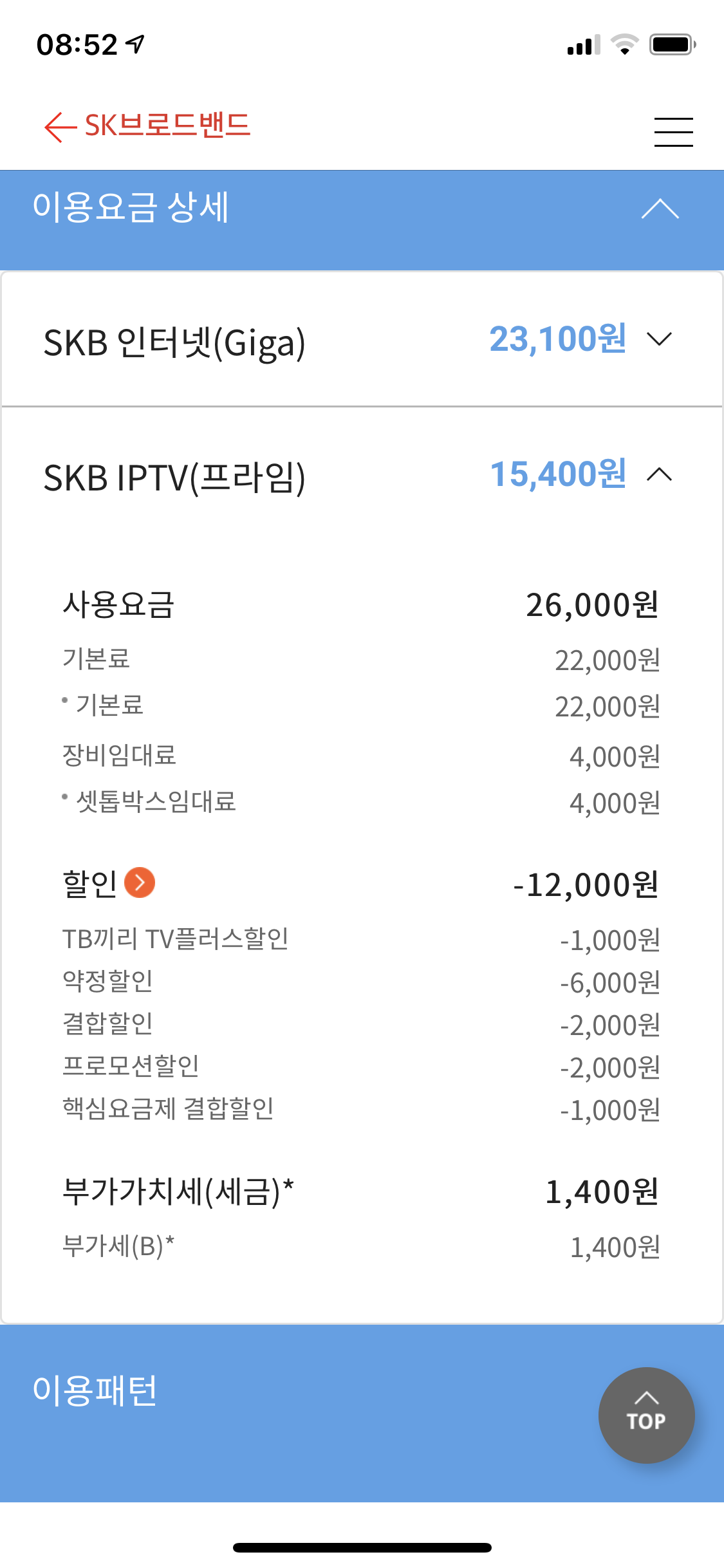 현재 기가라이트 + tv프라임 사용중이며 월 ₩38,500원 입니다
