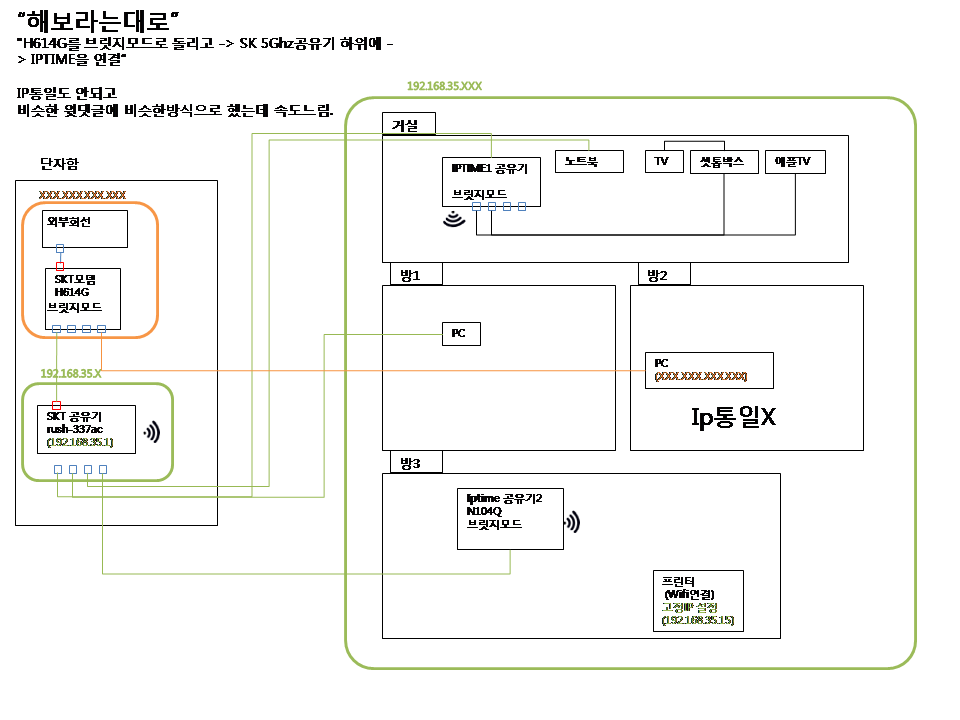 '현재 구성도'에서 나머지 공유기들은 그대로 두시고 (IPTIME와 SK 공유기)