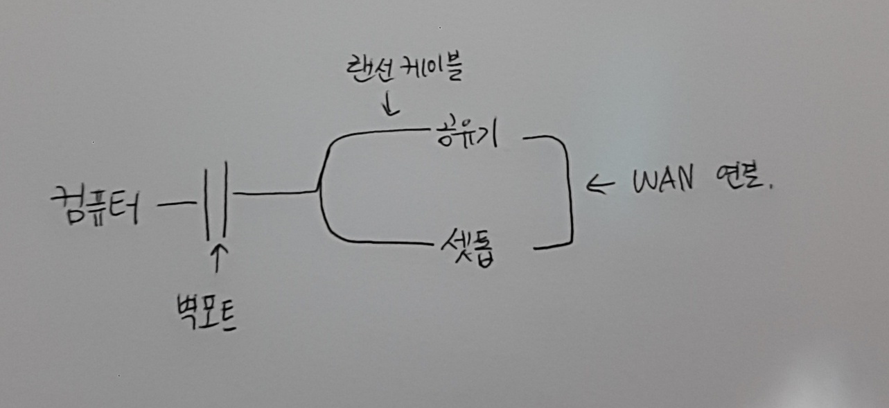 공유기 LAN포트 <-랜선-> 셋탑박스 WAN포트