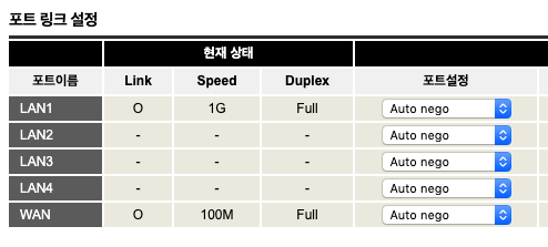 여기서 문제는 WAN포트의 속도가 100메가급이라는 점이에요.