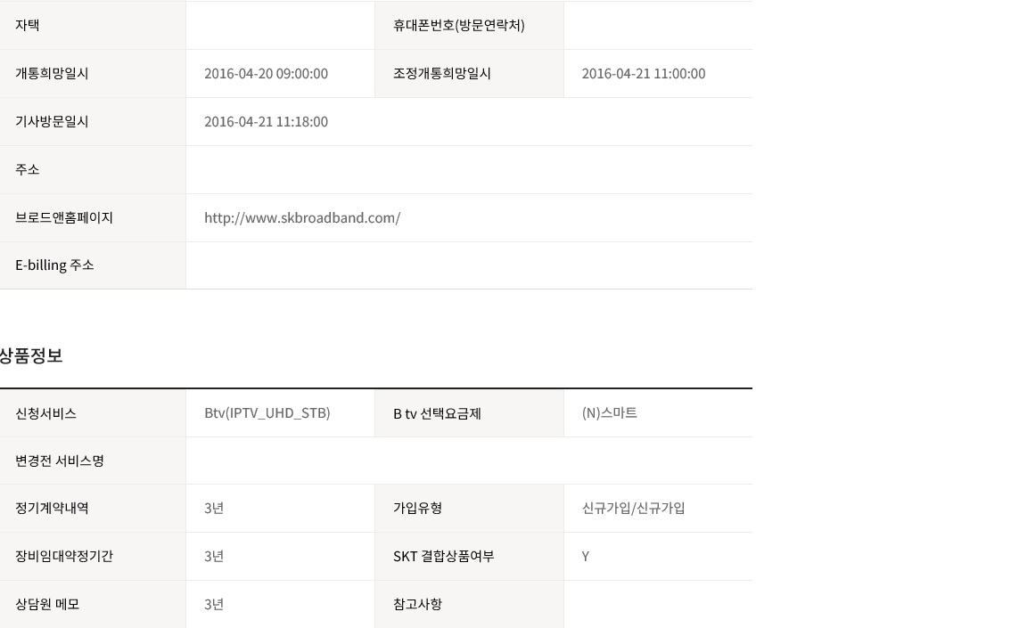이 SK 인터넷 등은 모두 2016년 4월에 개통받으셨으므로~~!!