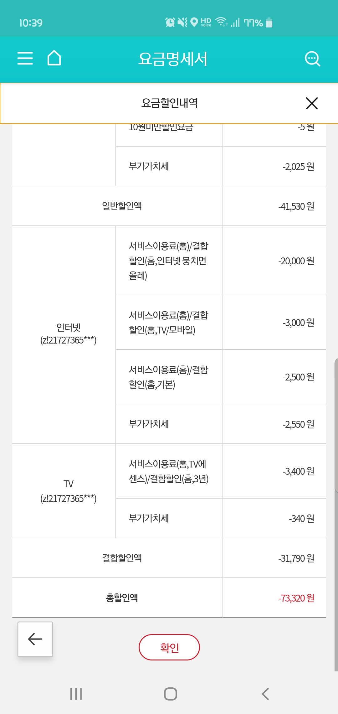 @loveeun****loveeun님~! 따로 요금 명세서를 살펴보셨군요?!ㅎㅎ