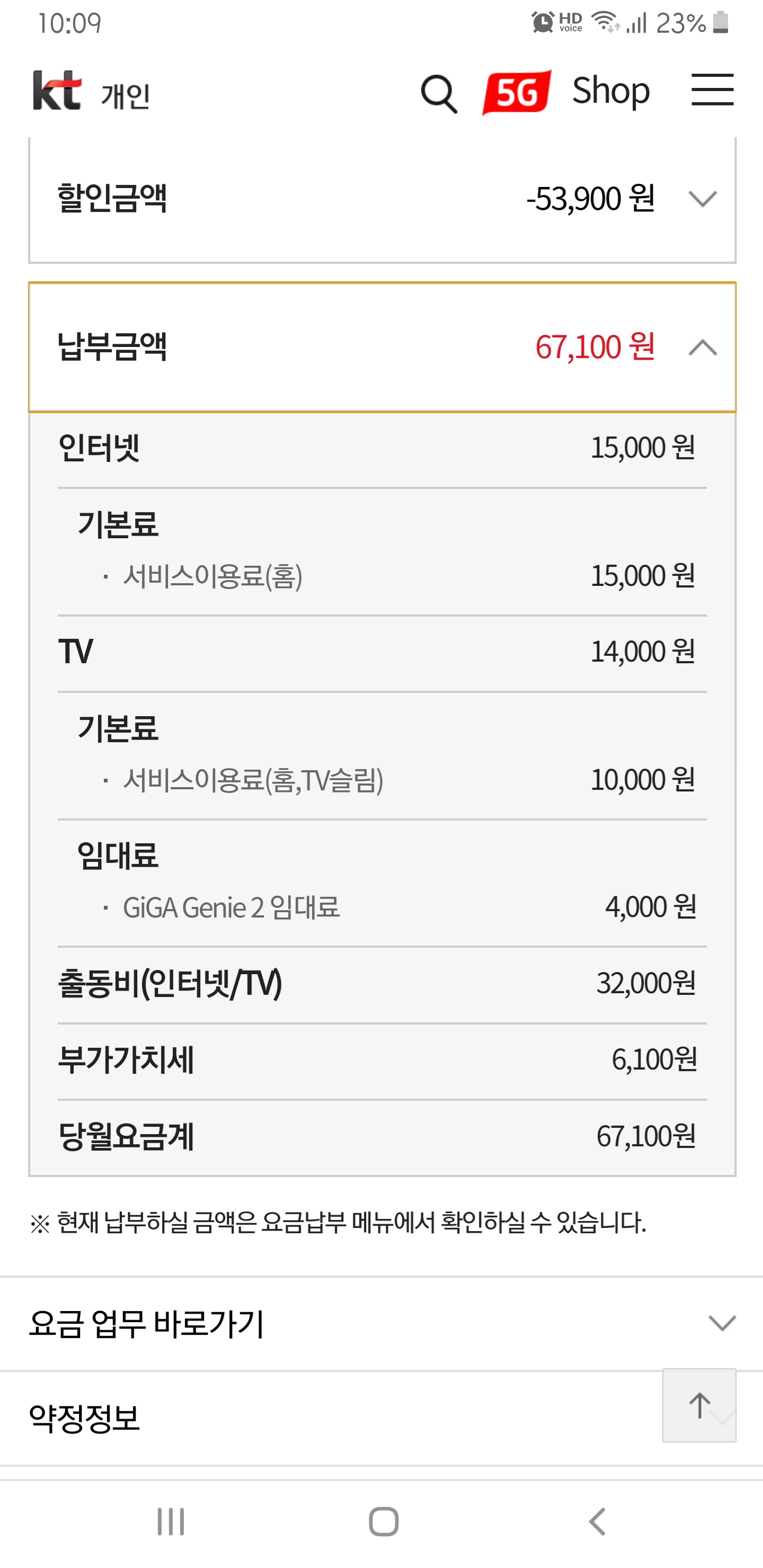 (인터넷 19,800원 + TV 15,400원)이 합산 청구됩니다.