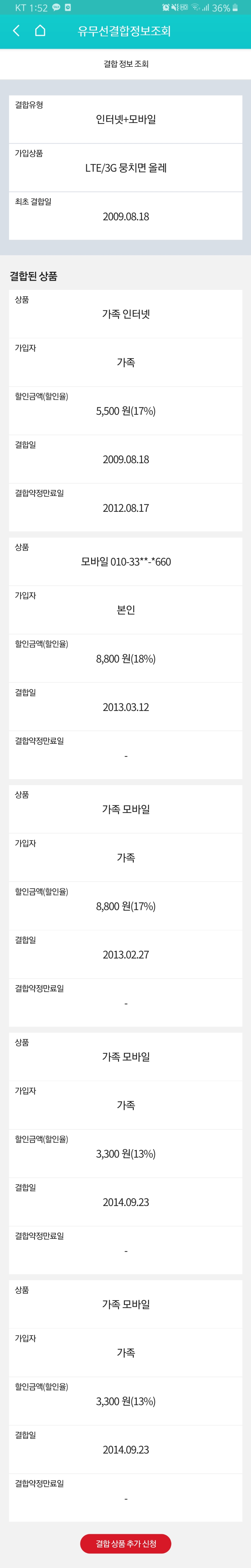 인터넷 다회선 결합은 : 기존에 쓰고 있는 KT인터넷이 있으면