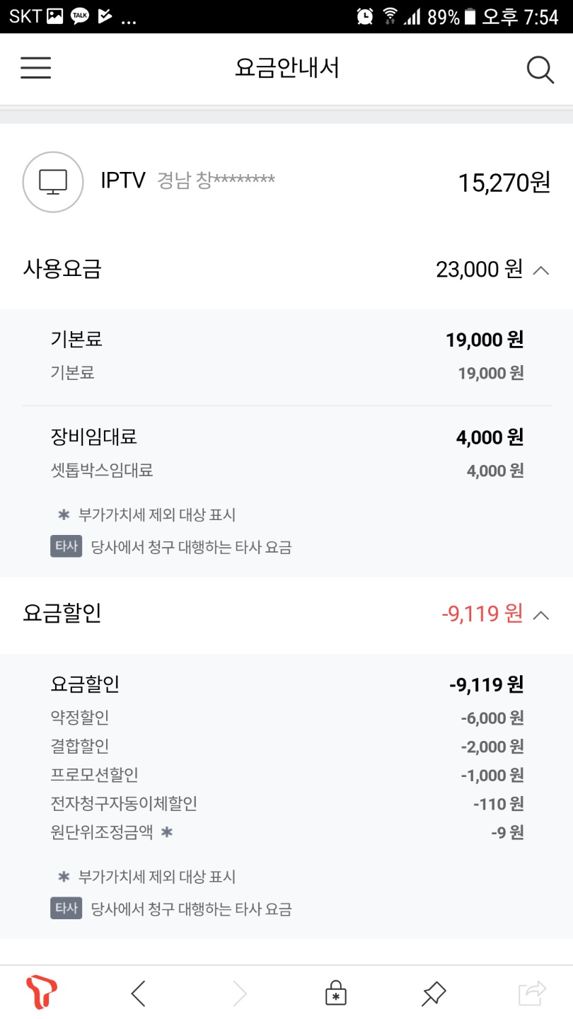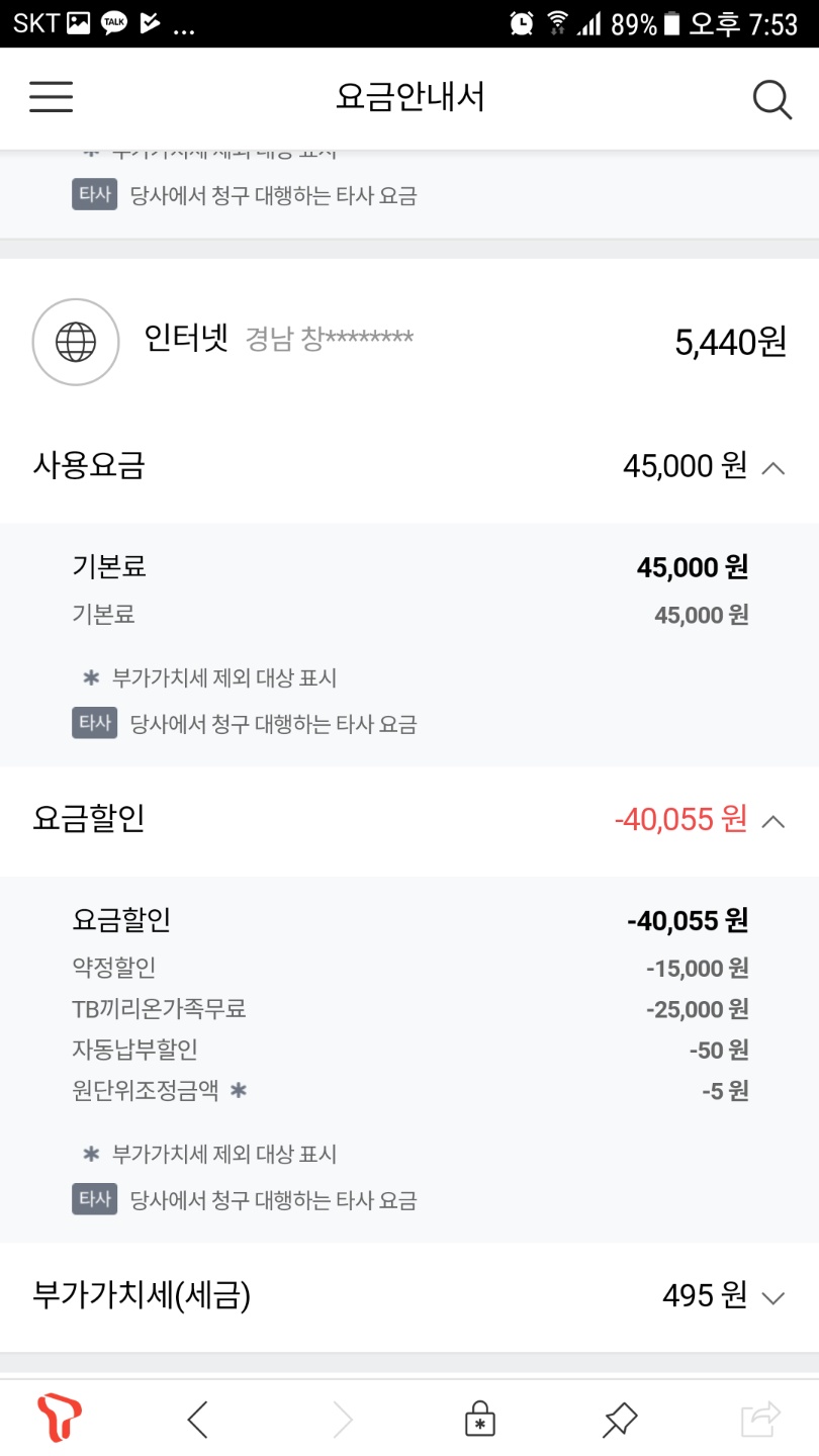 인터넷 요금 10% 할인 + 폰들 요금에서는 할인이 없고요;;