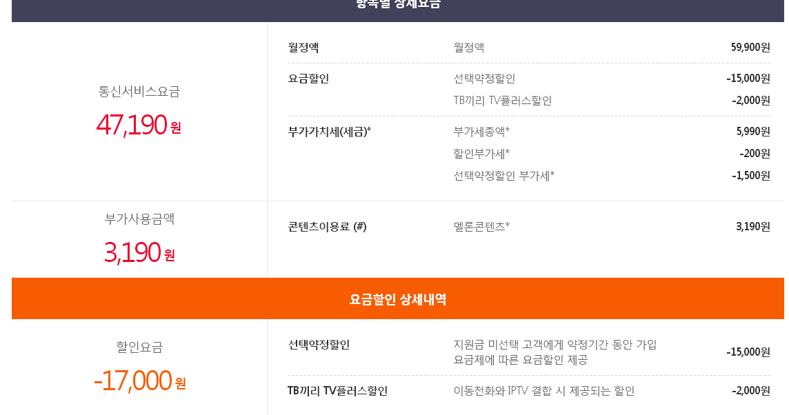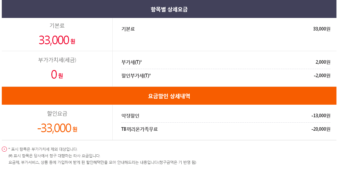 어느 요금제로 가입하셨는지, 추가 할인받은 요금이 있는지,