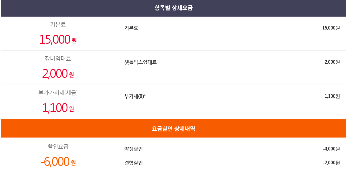 한 눈에 보기 쉽게 요금을 비교해드리면,