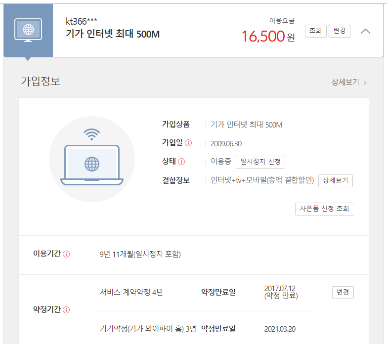 즉 단순한 상품변경만 진행되었다면 인터넷 약정은 만료된 상황이 맞을 텐데요..!