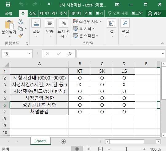 웬만한 시청제한 설정은 3사 모두 동일하게 제공되고 있었어요 ^ㅡ^ㅎㅎ