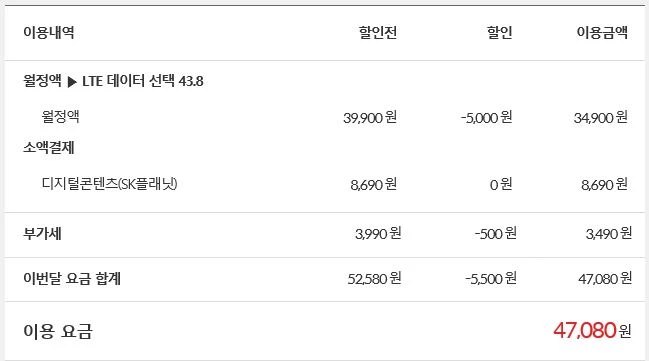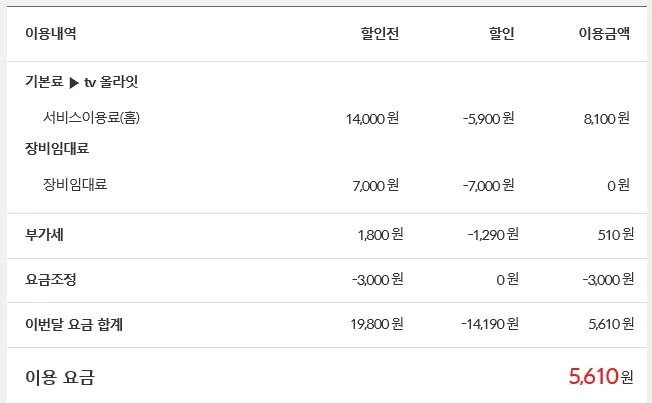인터넷+TV+휴대폰 3대 결합으로 요금할인이 잘 적용되고 있습니다 +_+