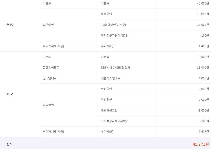 ---제가 지금 사용하고 있는 업체는 SKB이고 한달에 내고있는 금액은 인터넷과 TV포함하여 아래와 같습니다~
