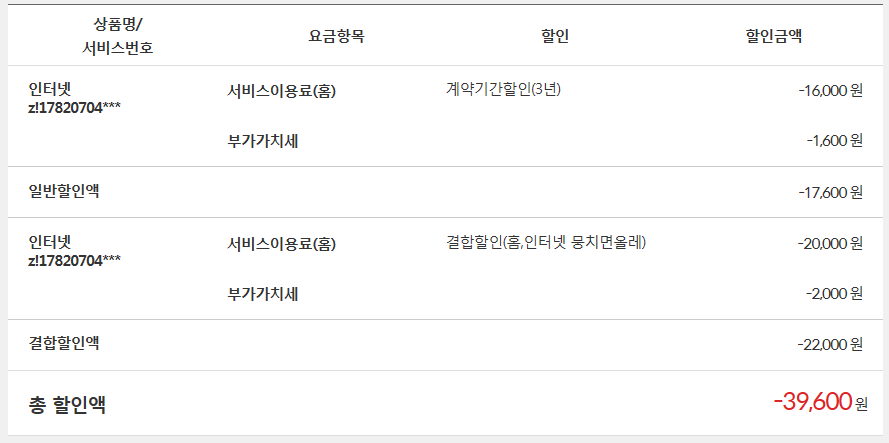 이 경우에는 매월 인터넷 22,000원 할인혜택을