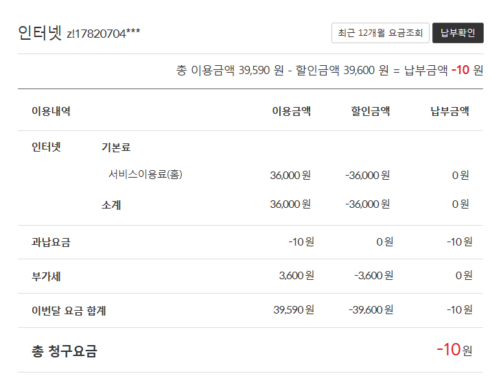 3년 추가 약정으로 할인이 많이되어 요금을 내지않고 있는데요.