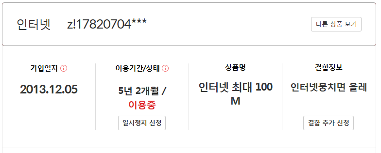 인터넷과 IPTV 한번에 약정관리가 가능하여 좋구용!!