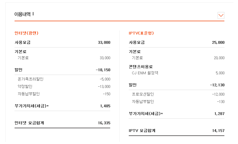 지금은 IPTV 셋탑임대료가 면제된 이유도 적용되어 있을 거예요~!ㅎㅎ
