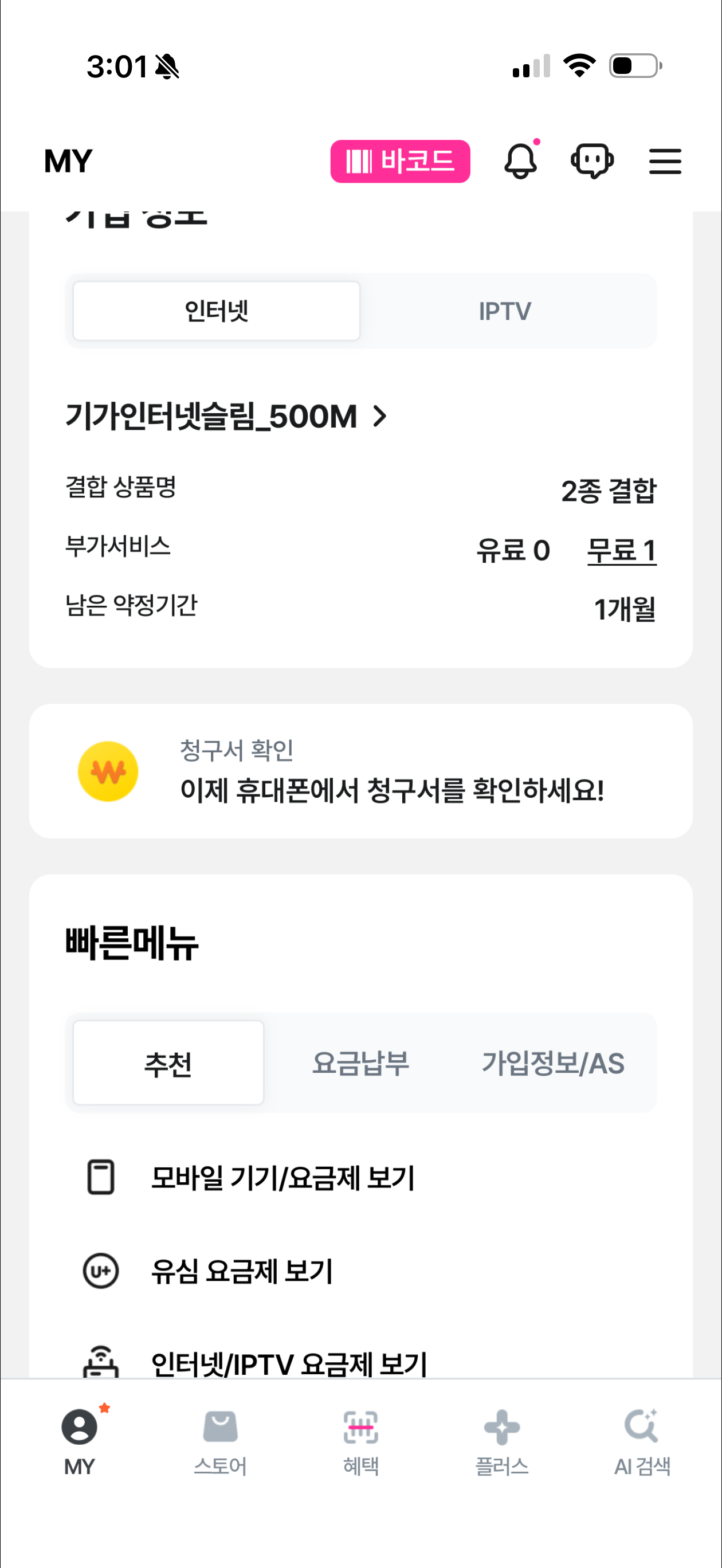 가족들이 KT 휴대폰을 사용하고 있어서 유무선 결합 할인도 많이 받을 수 있고,