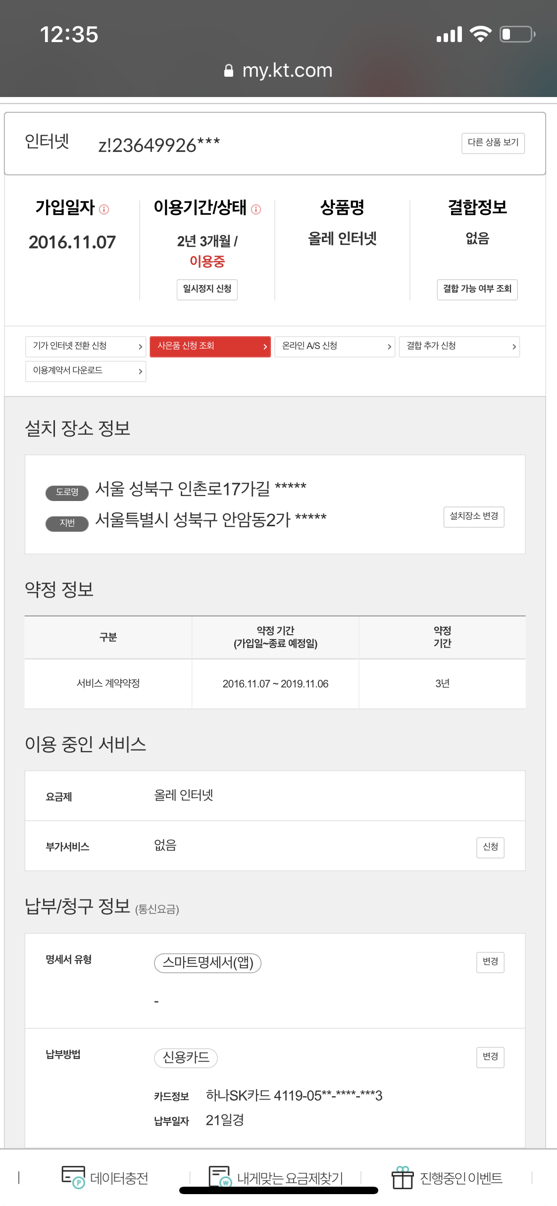 KT 본사 고객센터(국번없이 100번)를 통해 다시 한번 확인해주세요^^;
