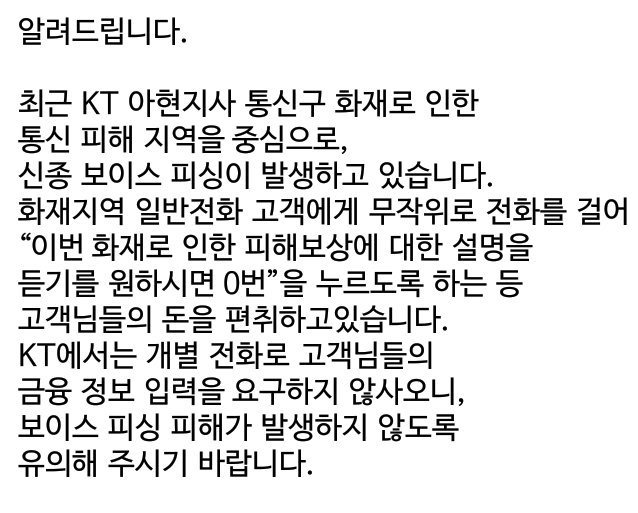 KT 화재사건 이용한 보이스 피싱이 발생한대네요,