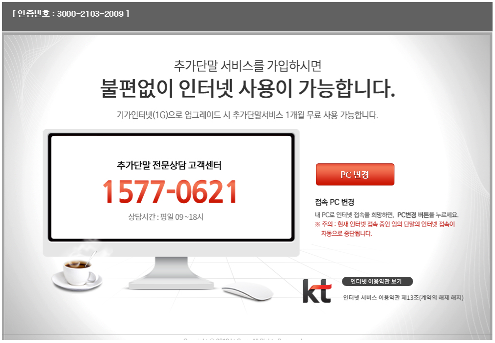 작년 KT 기업용 설치 후 인증수 제한조치 문제가 생겨서