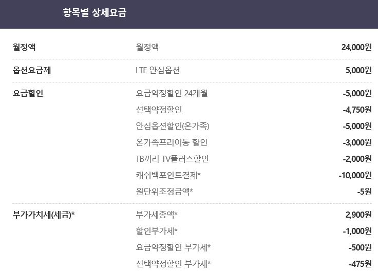 1. 가족 중 저만 SKT 1회선이용 중이며 SKT 요금제중에서 가장 싼요금제인 맟춤형 24요금제 이용중입니다.